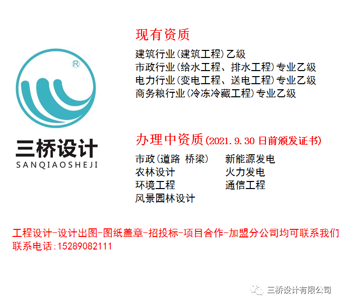 三桥设计有限公司简称三桥设计成立于2021年,注册资金5000万,我院自成立以来以建筑工程规划设计、市政工程规划设计、城市园林绿化规划设计;城市规划设计;电力设计;风景园林工程设计;冷冻冷藏工程;农林设计;环境工程;新能源发电;火力发电;通信工程等为主。为致力于打造新时代的优质企业,院长从始至终以责任使命推动发展,实施强企战略,引进优秀人才,注重培养和开发人才,增强凝聚力,推动本院稳步、健康、可持续的发展。
